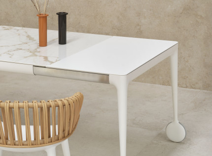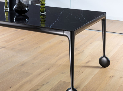 Pagrindinis transformuojamo stalo akcentas – ratukai, kurie leidžia lengvu judesiu , be vargo išilginti stalą, o estetiniu požiūriu suteikia BIG WILL dizainui netikėtumo ir intrigos detalę. Genialiai pašėlusio prancūzų dizainerio Philippe Starck pasirinktos netradicinės šaltosios medžiagos, plienas bei stiklas, pakylėja stalo estetiką į kitą dimensiją: suteikia jam charakteringą išskirtinumą, neginčijamą stotą bei pramoninio stilliaus šaunumą. Norintiems šiltesnio efekto - juodai dažyta stalo konstrukcija ir amerikietiško riešuto stalviršis.