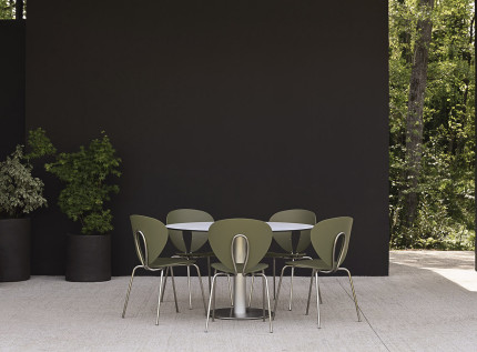 ZERO yra santūraus ir elegantiško dizaino stalų su centriniu pjedestalu kolekcija. Stalo koja gali būti natūralaus plieno, dažyta juodai ar baltai. Stalviršį galite rinktis iš ąžuolo, riešuto lukšto, lakuotą baltai arba skirtingų spalvų laminato. Stalai su plieno baze ir HPL stalviršiu gali būti naudojami ne tik viduje, bet ir lauke. Platus stalviršio dydžių pasirinkimas.