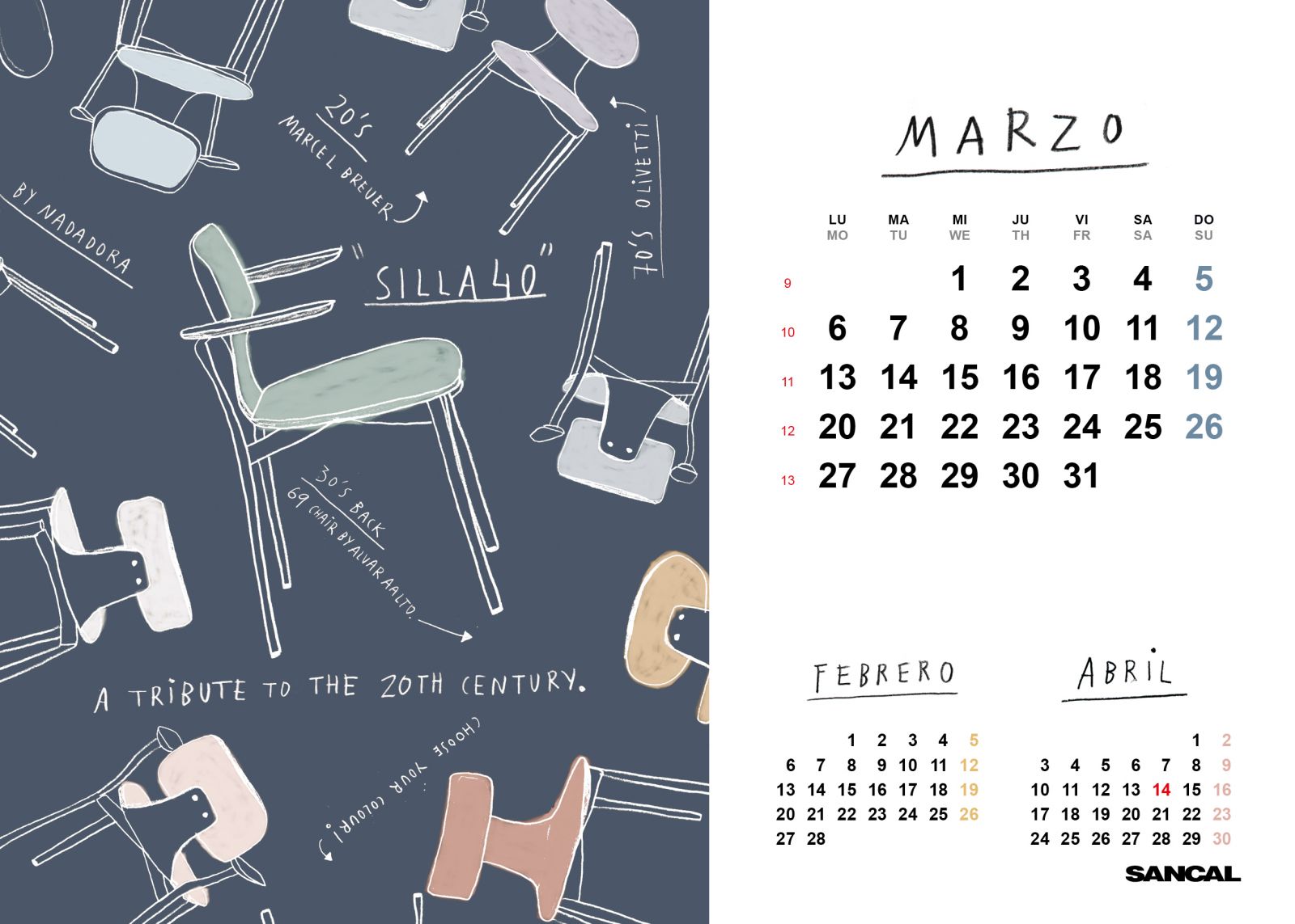 KOVO mėnesio iliustracija su SILLA kėdėmis.