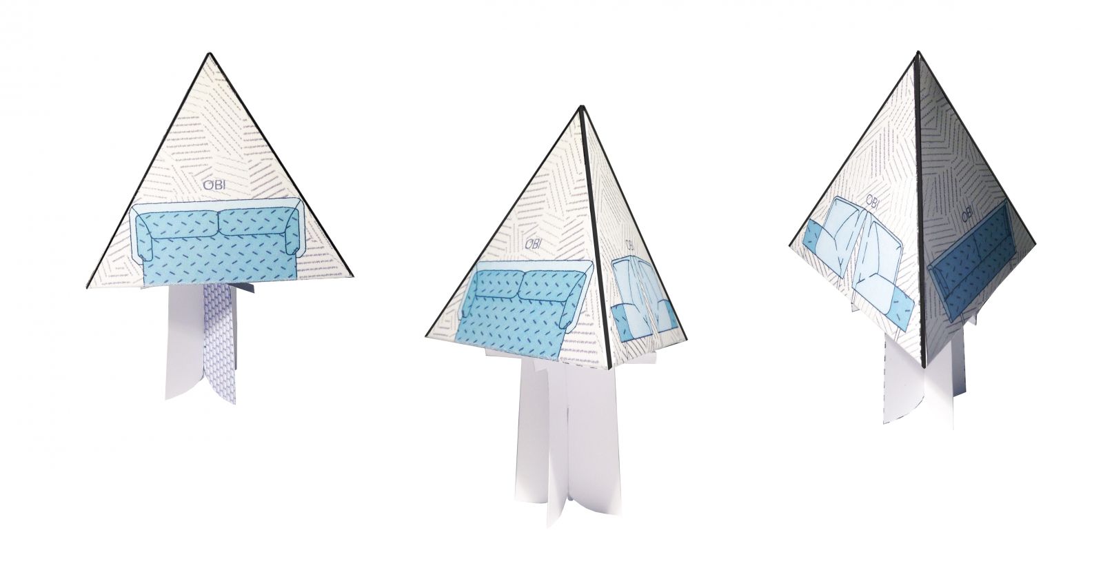 Instrukcija: iškirpti eglutės kontūrą su kamienu (vienas spalvotas, kitas punktyru pažymėtas). Kamienus sunerti įkerpat vidurio punktyro linijas ir nulenkti auseles. Likusią eglės lają lenkti per punktyrus suformuojant trikampią piramidę ir suklijuoti.