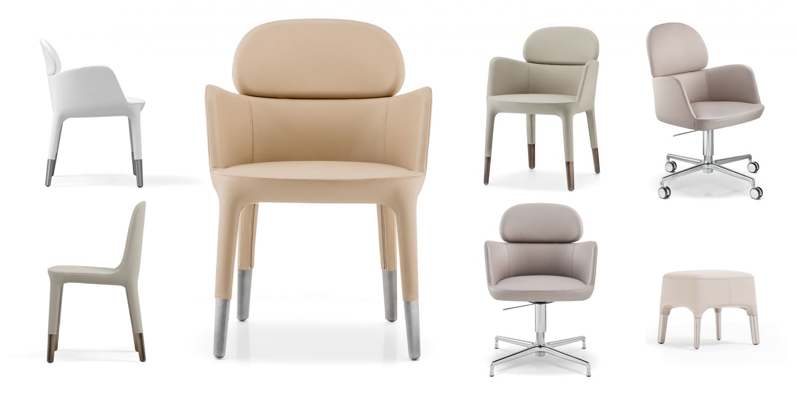 Kėdė, kurioje susipina elegancija, funkcionalumas ir ergonomika. Precizika ir dėmesys detalėms lydi kiekvieną kėdės dygsnį. Monumentalumo suteikia vienalytiškumas: visa kėdė traukta natūralia oda arba audiniu. Kaip akcentas - lieto aliuminio kojų detalės. Jas galima rinktis tarp satininio aliuminio, šlifuoto žalvario arba juodo nikelio spalvų. ESTER kėdžių šeimą sudaro : valgomojo kėdės su ir be porankių; darbo kėdės su ir be ratukų; pakojis.