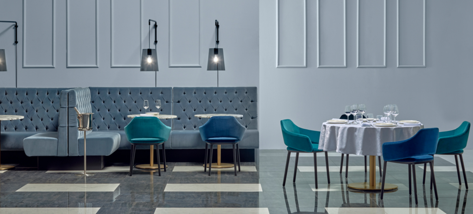 Itin patogi ir elegantiška kėdė subtilaus dizaino atlošo dėka sukurianti maloniai apgaubiantį pojūtį. Atlošo vingis centre yra šiek tiek pakilęs nuo sėdimos dalies - taip yra patogiau suimti kėdę prireikus kilstelti. Grakščios medinės kojelės užtikrina tvirtumą ir stabilumą apgalvoto kojaryšio dėka. Atlošo ir sėdimos dalies apdailai galite rinktis iš skirtingų audinių ar odų palečių.