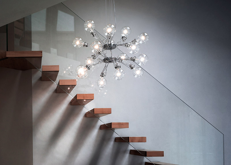 MATRIX - plati skirtingų šviestuvų serija, kurioje skirtingų dydžių lubiniai ir sieninis šviestuvai.