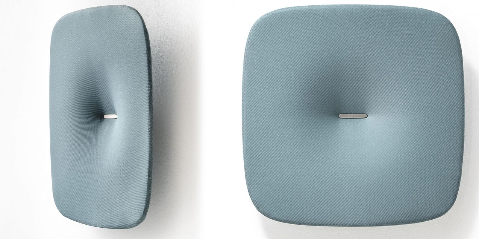 SNOOZE - akustinės panelės tinkančios naudoti tiek ant sienų, tiek ant lubų. Tai dekoratyvi panelė, kurios forma primena garso difuzorių kolonėlėje.Vidinė sudetis: skirtingų tankių ir storių poliesteris. Kaip akcentas - metalinė detalė panelės centre. Tai ne tik gražus akcentas, tačiau ir funkcionalus pakabinimas iš kitos pusės. Lengvas montavimas leidžia sukurti žaismingas kompozicijas. Nuvelkami gobelenai su užtrauktuku nugarinėje dalyje, leis legvai prižiūrėti paneles, o platus gobelenų pasirinkimas - atrasti tinkamiausią spalvinį sprendimą.