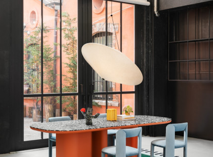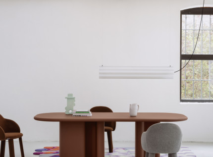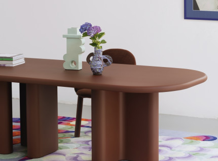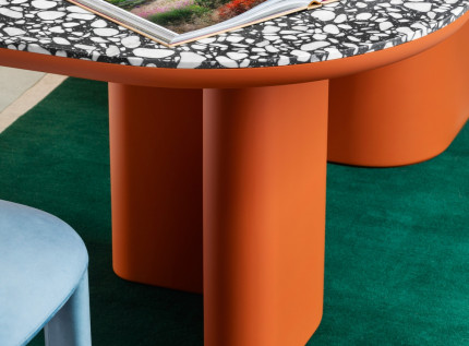 Įspūdingas aptakių formų stalas "Bonbon" kuria dinamišką atmosferą. Išlenkta kojų forma ir masyvumas apibrėžia šio stalo estetiką. Paprastas ir aiškus grafinis stilius suteikia išskirtinumo.
