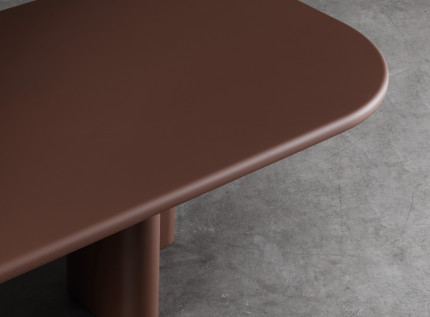 Galite rinktis stalą su 2 arba su 3 kojomis. Stalo bazė lakuojama pasirinkta spalva, o plataus stalviršių pasirinkimo dėka (natūralus medžio lukštas, lakuota medžio faneruotė, keramika, natūralus akmuo) stalą pritaikysite įvairioms erdvėms ir poreikiams.