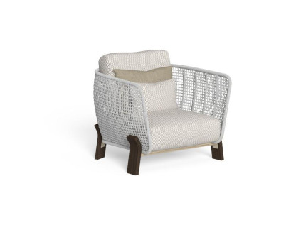 Vingiuotos porankių linijos ir geometrinės sėdynės formos susilieja į ARGO LOVE fotelius, puikiai tinkančius atsipalaiduoti laisvalaikio akimirkomis. Išoriškai pritvirtintos išlenktos medinės kojelės yra skiriamasis šios kolekcijos elementas. Porankiai ir platus atlošas iš austų jūrinių virvių sukuria rafinuotą medžiagų žaismą, atitinkantį visos kolekcijos žaismą. Greitai džiūstantis pagalvėlių užpildas iš putplasčio ir oro sąlygoms atsparūs audiniai leidžia funkcionaliai papuošti lauko erdvę. Kolekciją papildo sofa ir derantys staliukai.