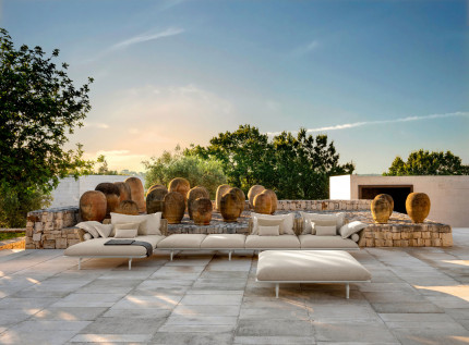 Kolekcija CRUISE//ALU įkvėpta gamtos ir buriavimo, kai nepakartojama emocija užplūsta gražiausiose pasaulio jūrose. Sofos konstrukcija pagaminta iš lieto aliuminio, kuris dizainui suteikia aiškias, elegantiškas formas, o porankiams ir atlošui naudojama sintetinė virvė. Įvairioms oro sąlygoms atspariu audiniu aptrauktos pagalvės sukuria tikrą poilsio oazę lauke.