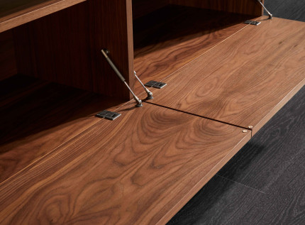 Dizaino studijos Norm Architects sukurta komoda CHICAGO – tai odė amerikietiškąjai mid century stiliaus architektūrai. Nepriekaištingo dizaino baldas ir pats drąsiai gali būti vadinamas mažąja architektūra: aiški struktūra tiksliai atkartoja pastatui būdingą ritmą, leidžia išskirti visus jo elementus. Tvirta plieno konstrukcija suformuoja stabilų baldo rėmą, o viena nuo kitos atitrauktos atskiros dalys sukuria neįtikėtiną lengvumo, erdvės pojūtį. Medis, akmuo ir plienas – trys skirtingos materijos, pulsuojančios vienu, mid century, ritmu. Papildomam funkcionalumui galimi pravedimai laidams.
